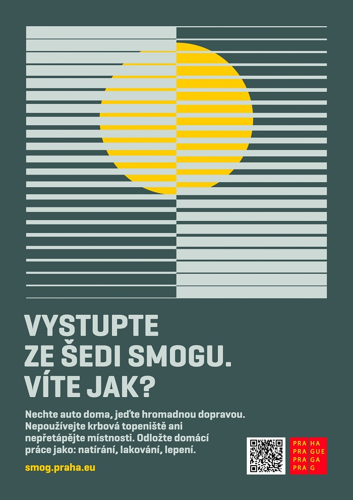 V době smogových situacích tak mohou lidé při své cestě po městě narazit na vizuály nabádající, aby nepropadali panice či aby vystoupili ze šedi smogu. Například v metru, tramvajích či na venkovních plochách si přečtou stručné pokyny typu „Omezte pohyb venku“, „Větrejte krátce“ nebo „Nechte auto doma, jeďte hromadnou dopravou“.