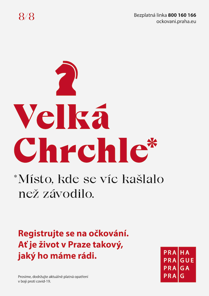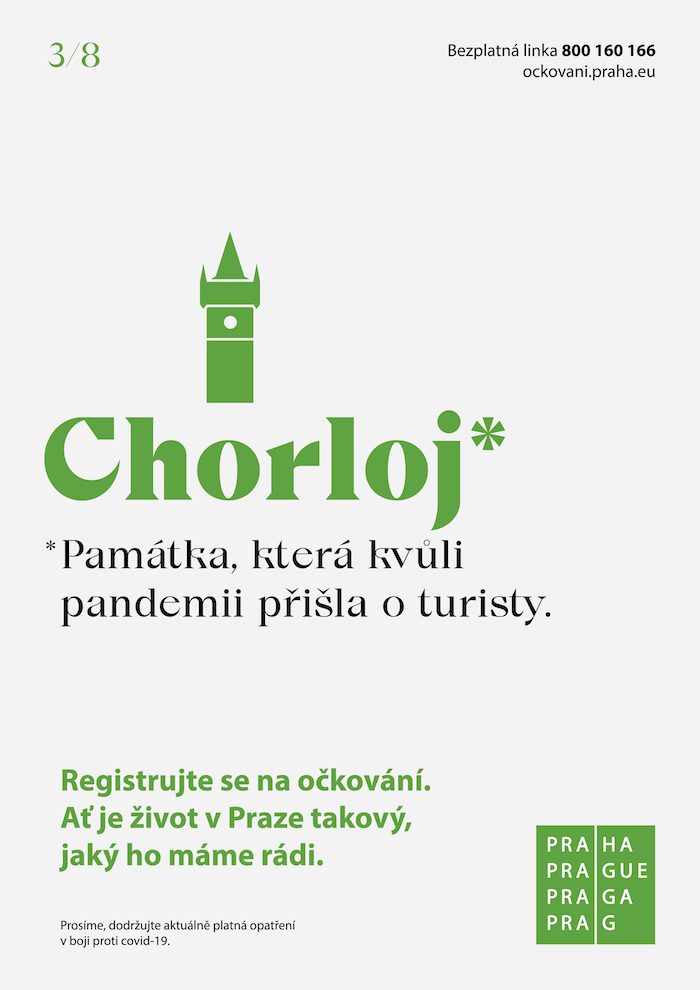 Magistrát hl. m. Praha spouští další očkovací kampaň, kterou opět zdarma připravila agentura DDB Prague. Tentokrát si hraje s názvy známých míst v hlavním městě a mění je, aby ilustrovaly, jak se život v hlavním městě během pandemie proměnil. Vinohrady se tak mění na Virohrady, Výstaviště na Výstavpříště, Orloj na Chorloj a Národní třída na Marodní třídu
