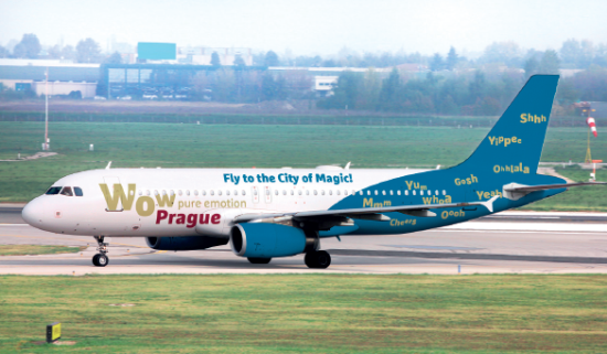 „Polep letadla bude zhotoven v duchu nového vizuálního stylu Prahy. Předběžný grafický návrh počítá s variací citoslovcí doplněných sloganem ,Prague – pure emotion‘. Věříme, že tato ne zcela běžná forma propagace Prahu opět zviditelní a přiměje k její návštěvě další turisty,“ uvádí mluvčí PIS – PCT Kateřina Bártová.