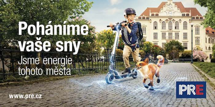 Pražská energetika (PRE) vstupuje poprvé ve své historii s kampaní do televize. Sází přitom na pohádkový příběh o přátelství zvídavého chlapce Přemka a jeho kamarádky lišky Eli, jež se mu zjeví při hodině fyziky a společně dodají energii elektrokoloběžce, elektromobilu, tramvaji, veřejnému osvětlení, hračkám v dětském pokojíčku a celému městu. Cílem kampaně je především budování pozitivního vztahu se značkou.