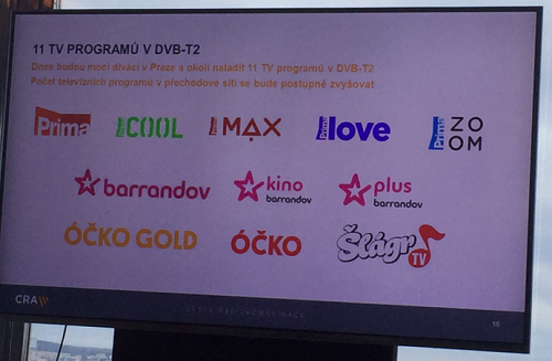 Čtvrtina obyvatel České republiky má mít teď přístup k vysílání jedenácti stanic (Prima, Prima Cool, Prima Max, Prima Zoom, Barrandov TV, Kino Barrandov, Barrandov Plus, Óčko, Óčko Gold, Šlágr TV) v novém standardu DVB-T2. Vysílání bylo spuštěno z vysílačů Praha-Žižkov a Praha-Cukrák. Síť DVB-T2 má být v následujících měsících rozšiřována i do dalších regionů republiky. Následovat budou Ostrava a Brno, pokrývání by mělo rychle postupovat. Nová síť DVB-T2 má zajišťovat vysílání televizních programů komerčních televizních stanic i po roce 2020, kdy se předpokládá vypnutí stávajících DVB-T sítí.