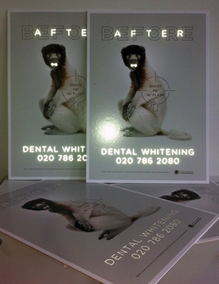 Netradiční plakáty ke své prezentaci využila i finská dentální klinika Hammaspeikko. Za účelem propagace služby bělení zubů pro ni agentura McCann připravila plakát, který ukázal skrytý obsah po vyfocení bleskem.