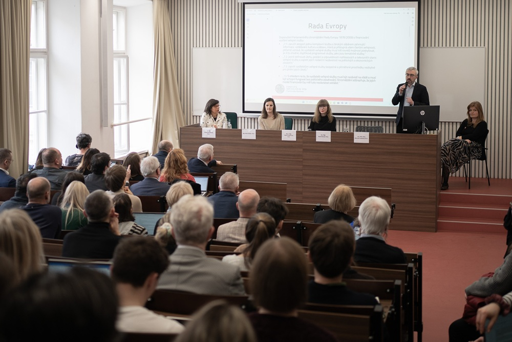 Debatu poprvé společně uspořádaly Fakulta sociálních věd Univerzity Karlovy (FSV UK), Fakulta sociálních studií Masarykovy univerzity (FSS MU) a Filozofická fakulta Univerzity Palackého v Olomouci (FF UP). Na panelu vystoupili Andrea Hanáčková z FF UP, David Klimeš a Alice Němcová Tejkalová z FSV UK a Marína Urbániková a Klára Smejkal z FSS MU. Z publika promluvil mimo jiné i senátor David Smoljak. Foto: FSV UK
