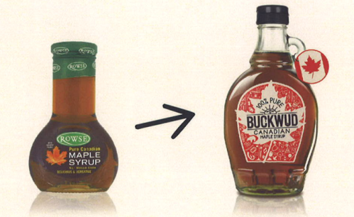 Pro nový název Buckwud se inspirovala originálním kanadským označením pro javorový sirup Sinzibuckwud, který přeneseně znamená „tažený ze stromu“. Kromě toho byl vytvořen seznam piktogramů, které odkazují ke starobylé receptuře. Design lahve se inspiroval tradičním kanadským džbánkem na uskladňování sirupu. Za čtyři měsíce vzrostly prodeje o 52 %.