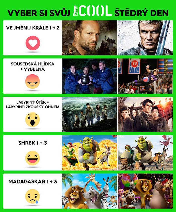 Diváci Prima Cool si mohou na FB zvolit filmy na Štědrý den.