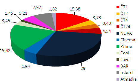 ČT1, které dobře fungují páteční a sobotní večerní pořady, se v září vrátila nad 15% podíl (15,38 %). Lídr tuzemského trhu, TV Nova, si oproti srpnu polepšila o 1,25 procentního bodu a září ukončila s podílem 29 %.