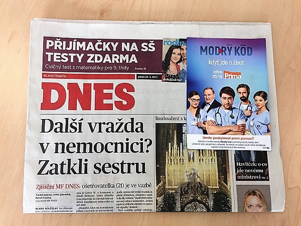 "V rámci tištěných titulů vyšel v pátečním vydání deníku Metro speciální osmistránkový „half cover“ představující seriál a jeho hlavní protagonisty. Ve stejný den byl na titulní stranu deníku Mladá fronta Dnes umístěn vlep s „kartou první pomoci“. V tištěných TV magazínech jsme připravili speciální branding na pořad v TV sloupcích. Dále nechybí wobblery na všech stojanech deníku Metro v pražské podzemní dráze a řada dalších exekucí, které dotváří celek jedné z největších kampaní televize za poslední roky," popsal Pýcha.