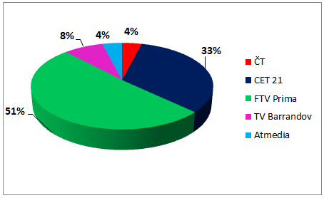 Ani březen nepřinesl zásadní změnu v rozložení reklamní komunikace na českých televizních obrazovkách, kdy většina spotů byla odvysílána na kanálech skupiny Prima. Za první čtvrtletí letošního roku tak podíl Primy v počtu odvysílaných reklamních TRP’s dosáhl v průměru 55 %, na konkurenční skupinu Nova připadlo cca 30 %. Oproti loňsku se tak poměr obou hlavních komerčních vysílatelů změnil: loni za stejné období představoval podíl CET 21 na TRP’s necelých 50 %, zatímco FTV Prima necelých 40 %. Změna na podílu TRP’s ale ještě nemusí znamenat adekvátní změnu v příjmech z televizní reklamy, záleží na ceně, kterou televize inkasují za ratingový bod. Právě tu Nova oproti loňsku zvýšila. Nova navíc několikrát upozornila, že s nižším objemem reklamy ve svém vysílání v prvním čtvrtletí počítala a že jde o záměrný plán, jak narovnat cenu televizní reklamy.