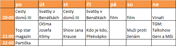 Oproti dosavadnímu schématu se přesune Show Jana Krause z pátečního večera na středu a Očima Josefa Klímy ze středy na úterý večer.