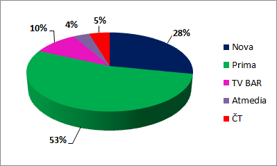 Jak už jsme informovali, v podílu na reklamních TRPs (target rating points), zaujala Prima za letošní první pololetí zhruba polovinu trhu, zatímco konkurenční Nova dosáhla cca 30% podílu. Nižší letošní objem skupiny Nova na prodaných TRPs souvisí především s letošní obchodní politikou skupiny Nova, na kterou v prvním pololetí nepřistoupili všichni klienti a všechny agentury.