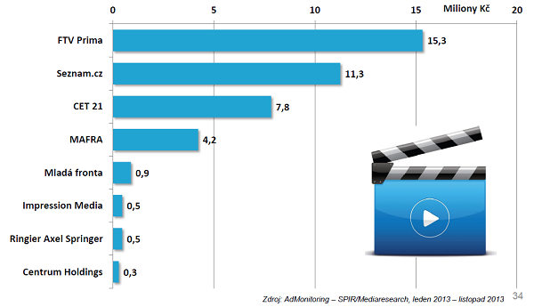 Provozovatelem, který si v listopadu stáhl nejvyšší objemy investic určených na videoreklamu, byla společnost FTV Prima, provozovatel webů televizní skupiny Prima. Z celkového listopadového objemu získala necelých 40 % (15,3 mil. Kč). Druhý nejvyšší podíl získaly podle monitoringu investic Seznam.cz a CET 21 (weby skupiny Nova).