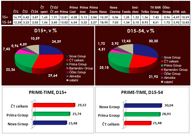 Sobotní odvysílání reality show Česko Slovensko má talent (Prima) přineslo lepší výsledky než první čtvrteční uvedení. Pořad v průměru sledovalo 556 tis. diváků starších 15 let, což byl druhý nejlepší výsledek večera po pořadu Zázraky přírody (ČT1). V mladší divácké skupině 15-54 byl dokonce Talent nejsledovanějším nezpravodajským pořadem po 20. hodině. Skupině Prima pomohl tento výsledek k lepšímu podílu v hlavním vysílacím čase ve skupině 15+, než kterého dosáhla konkurenční skupina Nova. V mladší skupině 15-54 byl podíl v prime-time (18:00-23:00) obou hlavních komerčních skupin téměř vyrovnaný.