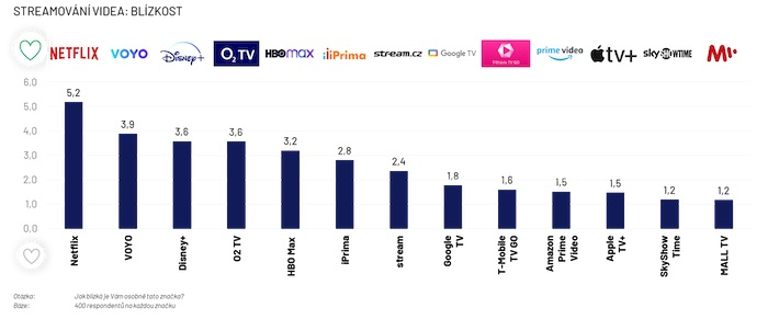 Z VOD služeb mají na českém trhu spotřebitelé nejblíže ke značce Netflix, s ní si tedy spojují nejvíce pozitivních očekávání. Druhou nejbližší, byť s odstupem, je videoplatforma TV Nova Voyo, které se daří zabírat prostor tam, kde zahraniční streamovací gigant není tak silný. Jedná se především o nabídku českých filmů a seriálů a také v nastavení vnímané hodnoty oproti ceně. Vyplývá to z případové studie výzkumné agentury Ipsos.