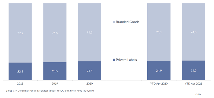 podíl privátních značek i akčních nákupů. Svou pozici posilují