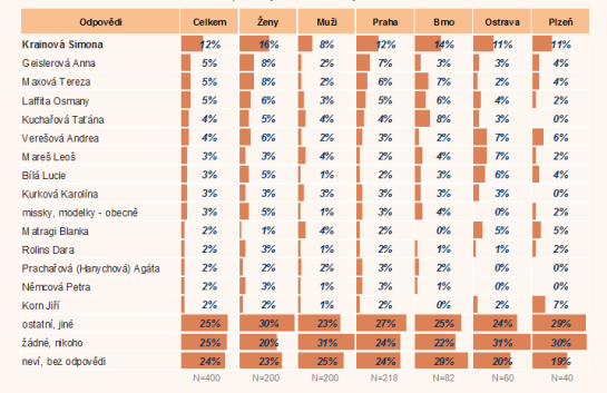 Za české módní ikony jsou považovány ženské celebrity – Simona Krainová, Anna Geislerová či Tereza Maxová –, z mužů Leoš Mareš a Jiří Korn.
