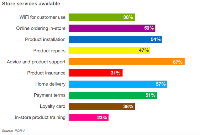 Mezi hojně nabízené služby patří produktové poradenství či doručení zakoupeného zboží domů, případně jeho instalace, které hojně nabízejí i české obchody. Téměř třetina (31 %) prodejců přidává k nákupu i možnost sjednání pojištění, u nás je to dokonce celá polovina.