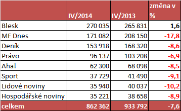 Vyplývá to z dubnových dat o prodaném nákladu tuzemských deníků.