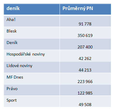 Prodané náklady tuzemských deníků se v letošním březnu v meziročním srovnání snížily o necelých 9 %. Jde o úroveň poklesu, která je v posledních letech na deníkovém trhu běžná. Celkově se letos v březnu podle dat ABC ČR prodalo 1,132 731 mil. výtisků. V loňském březnu to bylo o 100 tisíc více.