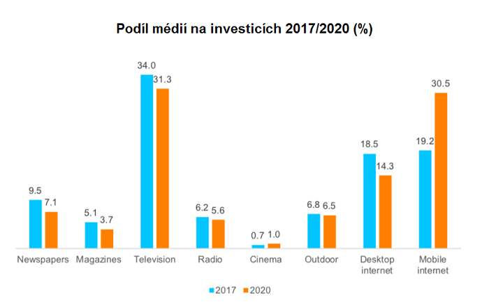 Televize a rádio mají mezi lety 2017 a 2020 růst o jedno procento ročně a venkovní reklama o tři procenta ročně. Kinoreklama však díky investicím do nových pláten, úspěšným filmovým franšízám a lepšímu mezinárodnímu marketingu roste o 16 % ročně. Hlavní hnací silou je zvyšující se poptávka v Číně, která loni předstihla Spojené státy a stala se v oblasti kinoreklamy největším trhem.