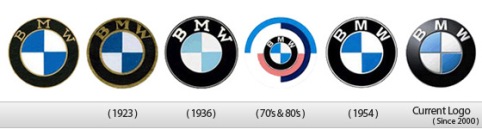 Německá automobilka BMW neboli Bayerische Motoren Werke (Bavorské Motorové Závody) ve svém logu odráží svůj historický původ. Společnost se totiž v době svého založení v roce 1916 specializovala na výrobu leteckých motorů. Čtyři kvadranty loga se střídající se bílou a modrou barvou tak symbolizují roztáčející se vrtuli na pozadí modré oblohy. Na následujícím obrázku je dobře vidět, že logo se nějak zásadně po celou dobu své existence nezměnilo, až na výjimku trochu divokých 70. a 80. let.