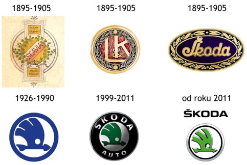 Česká značka Škoda se řadí mezi ty automobilky, jejichž logo je ve světě velmi ceněno. Na konci 19. století, kdy v mladoboleslavské dílně vznikaly jízdní kola a motocykly pod značkou Slavia, tvořilo základ tehdejšího loga kolo doplněného o atribut lipových listů, symbolizující slovanské národy. V horní části loga pak byla připojena jména zakladatelů firmy Laurin & Klement, jejichž iniciály se v roce 1905 staly ústředním motivem loga v secesním stylu, který byl ověnčen vavřínem – antickým symbolem slávy. Od roku 1926 byly automobily vyráběny pod značkou Škoda, která se tak dostává i do nového oválného loga. Ve stejné době se začíná používat i dodnes platný motiv – „okřídlený šíp“. Autorem jeho myšlenky (stylizované hlavy indiána s čelenkou s pěti péry) je údajně komerční ředitel Škody Plzeň T. Maglič. Modro-bílé kruhové logo, které je vyplněno doprava směřujícím okřídleným šípem se stylizovanou perutí, je dodnes používáno na některých originálních dílech Škoda. Od 90. let se používalo černo-zelené provedení loga, kde černá barva symbolizovala stoletou tradici, zelená pak ekologickou produkci. V roce 2011 společnost představila doposud své nejnovější logo, které má symbolizovat kvalitu a úspěch. Ústřední motiv okřídleného šípu byl výrazně zvětšen, a tím i zviditelněn. Dosavadní přírodní zelený odstín byl vystřídán svěží zelenou a černý vnější kruh byl nahrazen chromovým vzhledem.