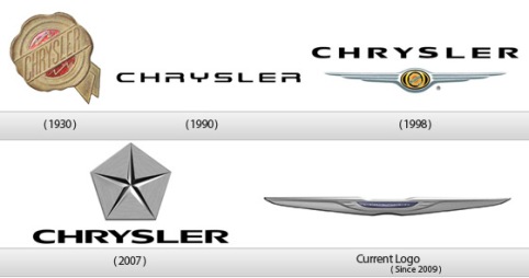 Americká automobilka Chrysler byla založena v roce 1925 Walterem Percym Chryslerem na zbytcích společnosti Maxwell Motor Company. Původní logo představoval kulatý medailónek s nápisem Chrysler napsaným na stuze. V roce 1955 bylo logo redesignováno Virgilem Exnerem a jeho nová podoba s názvem „Forward Look“ znázorňovala posun automobilky do budoucnosti. Skládalo se ze dvou překrývajících se bumerangů, z nichž spodní byl červený a horní modrý. Před rokem 1962 se automobilka odklání od svého dosavadního loga a začíná používat pěticípou hvězdu. V roce 1996 se však opět vrátila k medailónu založenému na původním logu, který byl o dva roky později po sloučení se společností Daimler-Benz doplněn dvěma stříbrnými křídly. Po oddělení od německého partnera se Chrysler opět vrátil ke své pěticípé hvězdě, které používá jako korporátní logo, na automobilech je však nadále k vidění okřídlený medailon. V roce 2009 bylo okřídlené logo modernizováno, tvar křídel se nyní více podobá roztaženým křídlům Astona Martina a ve středu původní medailónek nahradil modrý emblém s bílým nápisem Chrysler.