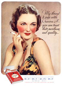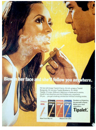 Reklamy na cigarety pochopitelně necílily vždy jen na muže. Tabákový průmysl brzy pochopil, že ženská část spotřebitelů je nesmírně cenná a má své vlastní požadavky. Tato reklama zdůrazňuje jak bezpečnost, tak smyslnost kouření.