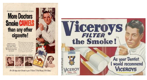 Podoba historické reklamy na cigarety či jiné tabákové výrobky je dnes pro mnohé pouze úsměvnou vzpomínkou. Připomeňme si, jak reklamy, některé přes půl století staré, propagovaly kouření před zavedením jakýchkoli restrikcí. Většina z nich by dnes, jednoduše řečeno, byla nerealizovatelná. Mnohé z nich by z dnešního hlediska bylo nepochybně možné chápat jako kontroverzní nebo sexistické a zejména – klamavé.