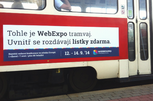 Jako plochu nesoucí pozvánku na konferenci si konference vybrala tramvaj pražské MHD. „Každé ráno vyrazí z vozovny tramvaj nesoucí vzkaz ,Tohle je WebExpo tramvaj. Uvnitř najdeš lístky zdarma.‘ Chtěli jsme získání lístků udělat pro lidi zajímavější. Pokud mají štěstí a naleznou WebExpo tramvaj stačí na adrese, která je v tramvaji promována, vyplnit místo, číslo tramvaje a e-mail a hned jsou ve slosování o volné vstupy na konferenci. Losuje se každý den,“ řekl Fuchs.