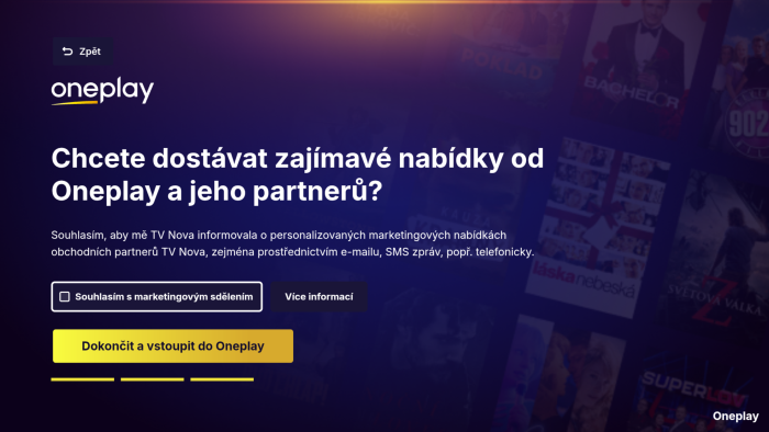První platformou, kde jsme vyzkoušeli novou online službu Oneplay, bylo multimediální centrum nVidia Shield Pro. Příjemným překvapením bylo to, že stávající zákazník nemusel nic dělat a nic instalovat. Původní aplikace Voyo už byla „přebarvená“ na Oneplay a stačilo ji tak pouze spustit. Lišilo se pouze to, že na počátku bylo nutné odsouhlasit obchodní podmínky nové platformy a udělit, případně neudělit souhlas se zasíláním marketingových materiálů Novy a jejich partnerů.