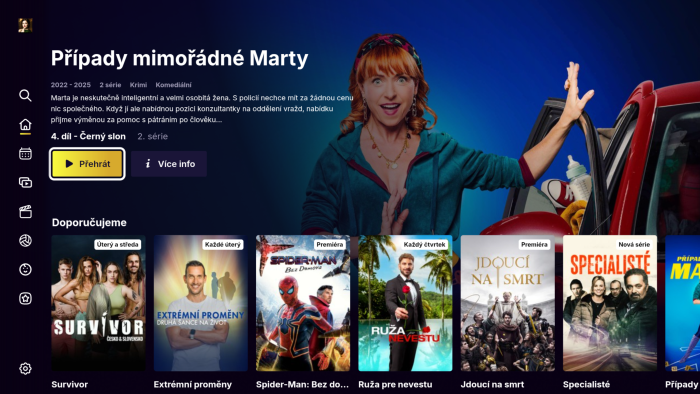 Nebylo nutné zadávat znovu přihlašovací údaje a uživatel měl hned připravené profily, na které je zvyklý. Následně čekalo na uživatele největší překvapení, samotné prostředí služby. Horizontální menu umístěné původně v horní části obrazovky se přesunulo doleva a je tedy vertikální orientované. Názvy kategorií jsou pravděpodobně totožné, jaké byly u samotného Voya. V rubrice Můj seznam jsem narazil ale na první háček. Místo všech uložených pořadů, jako byli Specialisté, Případy mimořádné Marty nebo Kriminálka Anděl tu na mě vykoukla pouze Policie Hvar.