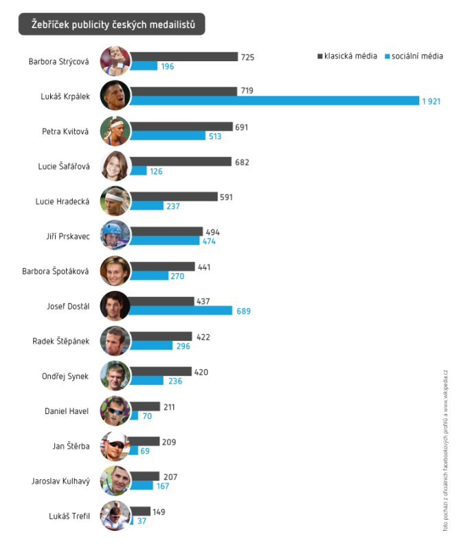V první desítce disciplín s největší publicitou se vyskytují především ty sporty, kde česká reprezentace na LOH 2016 slavila úspěchy. Naopak mezi nejčastěji zmiňovanými disciplínami chybí moderní pětiboj, střelba nebo desetiboj, ve kterých česká výprava zaznamenala velké úspěchy v minulosti. Potvrdil se tak trend, kdy publicita tradičně méně známých sportů stoupá pouze při medailovém úspěchu a nemá dlouhodobé trvání.