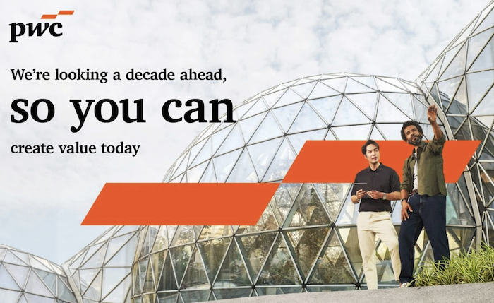 Prvním projektem v novém vizuálním stylu je globální kampaň „Value in Motion“, která predikuje proměnu byznysového potenciálu v jednotlivých odvětvích v desetiletém horizontu. PwC se zaměřuje na maximální využití technologií, včetně umělé inteligence, a podporuje své klienty v tom, aby dokázali reagovat na vysoké tempo změn v byznysu i volatilně se vyvíjející globální ekonomice. Na nové vizuální identitě a globální kampani pracovaly agentury FutureBrand (UK) a McCann (USA).