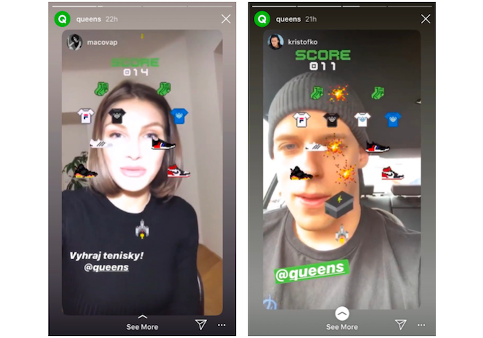 Český obchod s teniskami a streetwearem Queens uvedl ve spolupráci s kreativním studiem Cinesco interaktivní hru, která využívá prvky augmentované reality. Zájemci si ji mohou vyzkoušet přímo v Instagram Stories, až do 13. března bylo navíc možné se zapojit i do soutěže o tenisky podle svého výběru.