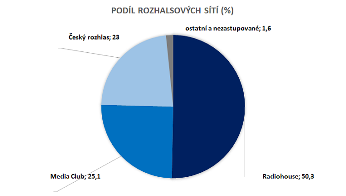 Z pohledu rozhlasových obchodních sítí si v prvním pololetí 2018 polepšily vedoucí Radiohouse, který zvýšil podíl na 50,3 % a také Media Club, jehož podíl nově překračuje 25 %.