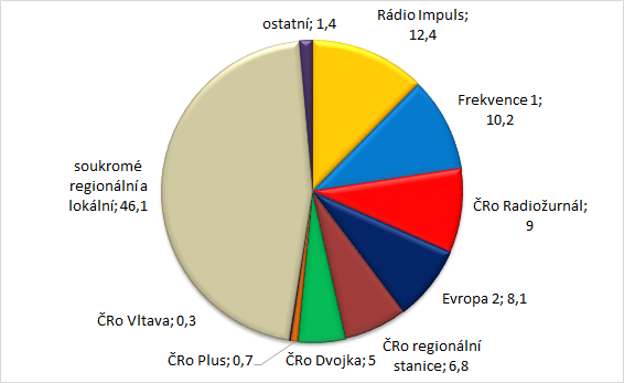 Z pohledu podílu na poslechovosti se situace nemění: jedničkou je Impuls před Frekvencí 1 a Radiožurnálem. V případě posledně jmenovaného se podíl snížil o 0,6 procentního bodu, naopak si o stejný výsledek polepšily regionální stanice Českého rozhlasu.