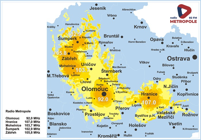 Moravské Rádio Metropole, která začalo vysílat v roce 2022 v Olomouci a okolí, se rozšiřuje do další částí Moravy. Nově vstoupilo také na Šumpersko 102,9FM, Zábřežsko 105,8FM, Mohelnicko 103,7FM a Hranicko 107FM.