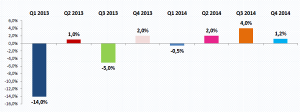 Z hlediska vývoje investic v jednotlivých kvartálech bylo pro rádia nejpříznivější loňské třetí čtvrtletí, ve kterém měly investice růst na úrovni 4 %. V posledním čtvrtletí loňského roku se objem udržel v rostoucím tempu (+1,2 %). Poslední kvartál roku je z hlediska objemů pro rádia nejdůležitější, loni se podílel na celkových investicích z 33 %. K rostoucím segmentům loni patřily maloobchod, stavební materiály, automobily, finanční instituce, farmacie či FMCG. Naopak klesaly elektronika, počítače, nákupní centra či cestovní ruch.