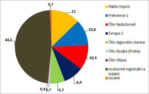 Také v podílu na poslechovosti si Radiožurnál polepšil nejvíce z top tuzemských stanic. Nejvyšší podíl má z jednotlivých stanic Rádio Impuls, dvojkou je Frekvence 1 a trojkou ČRo Radiožurnál.