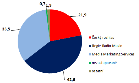 Z hlediska podílu rozhlasových sítí má aktuálně nejvyšší podíl Regie Radio Music (RRM), do jehož výsledku je započítáno i Rádio Impuls. To však od nového roku přechází k zastupitelství Radio United Services. Zároveň dochází ke spojení zastupitelství Media Marketing Services (MMS) a RRM, což od nového roku bude znamenat, že jejich podíl ve společné firmě Radiohouse se přiblíží k 53 % (52,8 %).