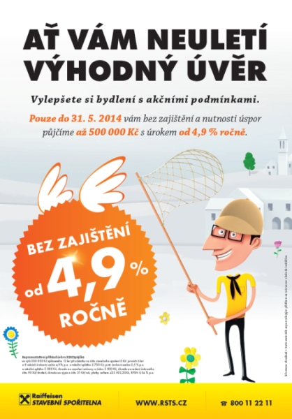 Raiffeisen stavební spořitelna připravila od 1. dubna jarní úvěrovou kampaň, jež komunikuje poslední možnost využít úvěr REKOpůjčka s úrokovou sazbou od 4,9 % ročně.