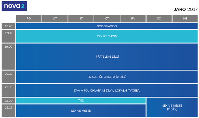 Druhým programem Novy je dřívější Smíchov, který od 4. února začne vysílat pod názvem Nova 2. Z tematických stanic Novy má projít asi největší proměnou. Hlavní novinkou ve vysílání této stanice je nasazení nového zpravodajského pořadu TN2, který se bude vysílat každý všední den od pondělí do pátku od 22:00. Patnáctiminutová zpravodajská relace má přinést přehled aktuálního dění, moderátorkou je Michaela Šmídová. Novinkou ve vysílání Nova 2 je také pořad s pracovním názvem Court Show z prostředí soudní síně. Má se objevit v průběhu jara, podle programové ředitelky Novy Alex Ruzek přinese Nova 2 až tři hodiny lokální tvorby denně, nemá stavět jen na akvizicích. Nova 2 má být vedle hlavní TV Nova druhou stanicí, která vysílá lokální premiérovou tvorbu. Program má být postavený na seriálech, sitkomech či animovaných pohádkách pro děti.