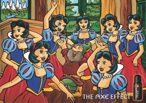 Pohádkové postavy potvrdily také neodolatelnost pánské vůně Axe. Například v roce 2003 si ji v německé kampani od agentury Lowe Lintas & Printas nemůže vynachválit jeden ze sedmi trpaslíků.