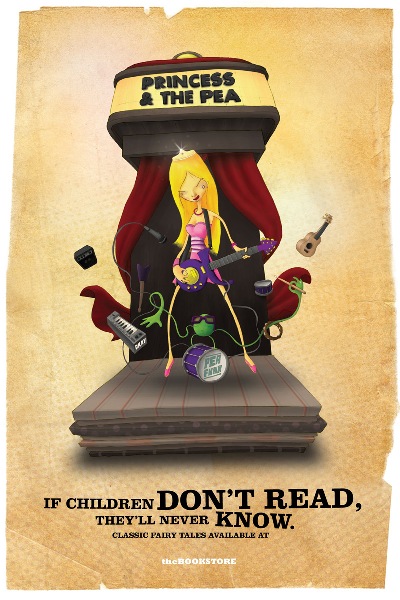 Jak snadné je o pohádkové kouzlo přijít jen tím, že si pohádky včas nepřečteme, ukázala v roce 2007 kampaň na knihkupectví MPH. Z Petera Pana se tak rázem stává šéfkuchař a z princezny na hrášku funková kytaristka.