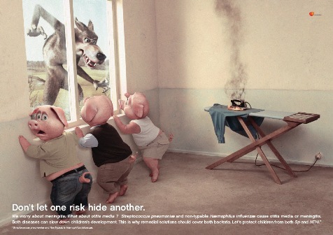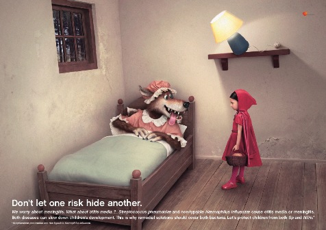 Společnost GlaxoSmithKline ve své belgické kampani od agentury Air upozorňovala na skrytá rizika v podobě dětských nemocí, která by neměla být překryta ani takovým nebezpečím, jako je vlk za dveřmi u tří prasátek či v posteli u babičky Červené karkulky.