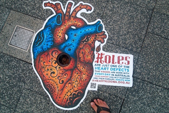 Sdělení valné většiny charitativních kampaní nebývá zrovna radostné, takže o podchycení naší pozornosti musí zadavatelé usilovat s nasazením neotřelého zpracování či volbou zajímavého média. To se podařilo australské nadaci Heartkids s lehce guerillovou kampaní nakreslených srdcí na chodnících s využitím detailů, např. děr a kanálů, pro znázornění nejčastějších srdečních vad u novorozenců. Agentura SHEDcsc, Austrálie.