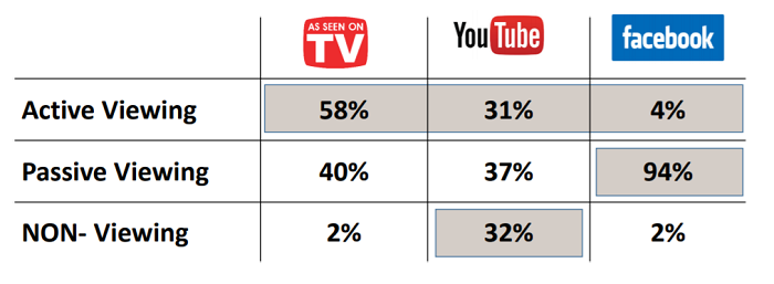 Pozornost má být klíčovým faktorem ovlivňujícím výběr produktů, uvedla dále Karen Nelson-Fieldová a přímo tak ovlivňovat úroveň prodejů. „Mezi pozorností a prodejem je silná provázanost. Pravděpodobnost nákupu u lidí, kteří byli vystaveni reklamě, se zvýšila o 17 % ve srovnání s lidmi, kteří reklamu neviděli,“ přiblížila dále. Proto každé video má pozitivní vliv na prodej zboží. Porovnání zmíněných platforem (TV, YouTube, Facebook) přitom znovu ukazuje, že televizní obrazovka dosáhla nejvyššího indexu.