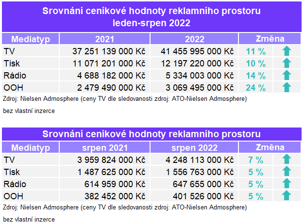 Všechny sledované mediatypy vykázaly v letošním osmém měsíci