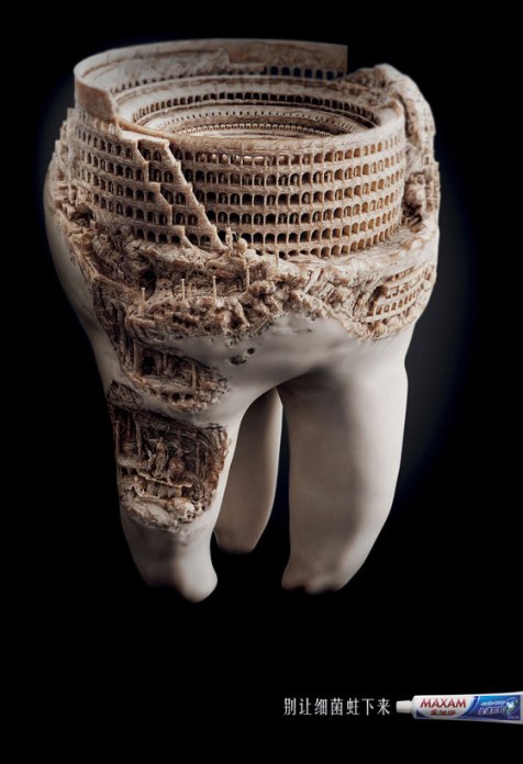 Někdy jdou na to mírněji a k upozornění na nebezpečí bakterií či zažloutlých zubů zvolí metaforický způsob - třeba v podobě starověkého Říma.