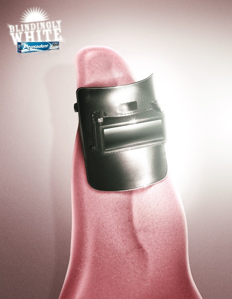 Někdy se však povede ukázat bělící účinky i trochu netradičně. Díky zubní pastě mohou zuby zářit natolik, že se proti nim musí nosit kšiltovka, klapky na oči, sluneční brýle, či dokonce svářečská helma.